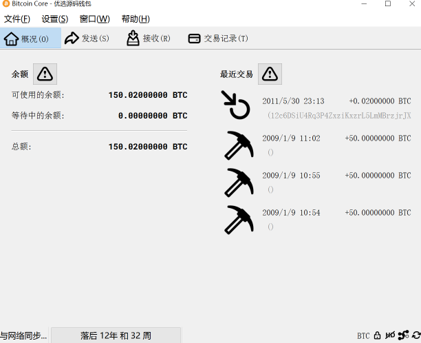 3. 打开Bitcoin Core钱包,在文件-恢复钱包,导入dat文件,等网络同步后,就能看到余额150BTC,仅装逼用,千万别忽悠人。 备注,如果是新手,狗总不建议你去dat交易网站去买老钱包,因为鉴别真假需要点专业知识,不然1个亿也太好赚了。曾经一度有人专门制作假dat卖给小白。 而且即便是真的,在使用解密工具的情况下,毫无线索的密码,理论上1台顶配电脑,要跑1千亿年才能解密。不过,如果是自己的老dat,记得一些关键词,可能几天就能破解了