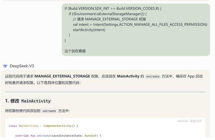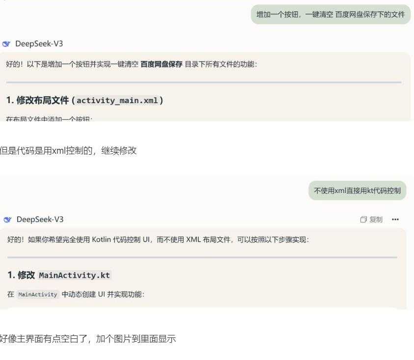 我以前学过安卓软件的开发,现在基本上忘得差不多,不过对一些基本的流程还是熟悉的,大模型刚开始火的时候尝试过,文心一言,Kimi之类的软件,但是把代码放进Android studio之后,报错的不少,修改起来很乱。