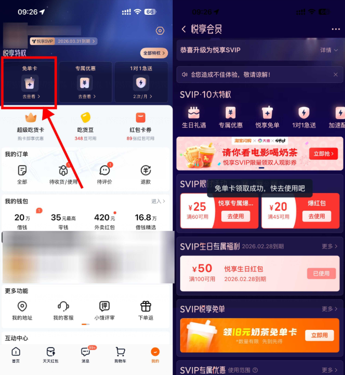淘宝闪购悦享会员领奶茶免单