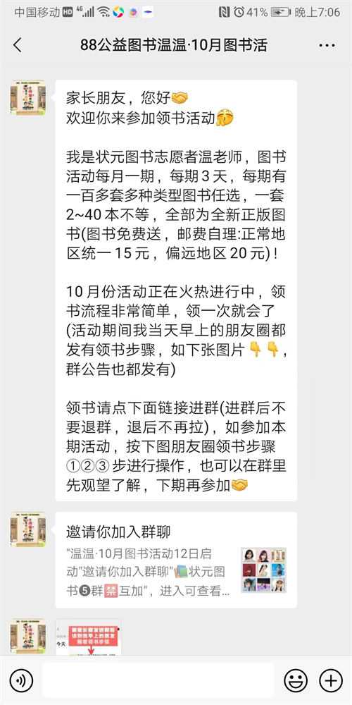 你进群后,根本不管你买不买!就自己在群里发消息,没有去再次私信群发告知这个月的领书活动。