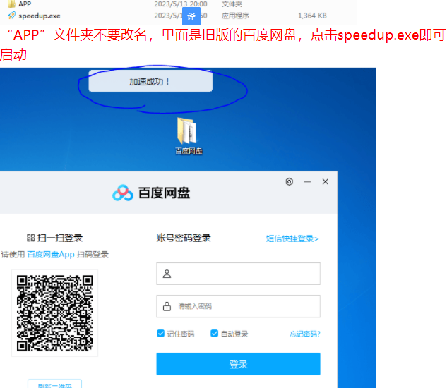 上方显示加/su成功即可!若无效可重新双击speedup.exe自动重启百度网盘进行变速