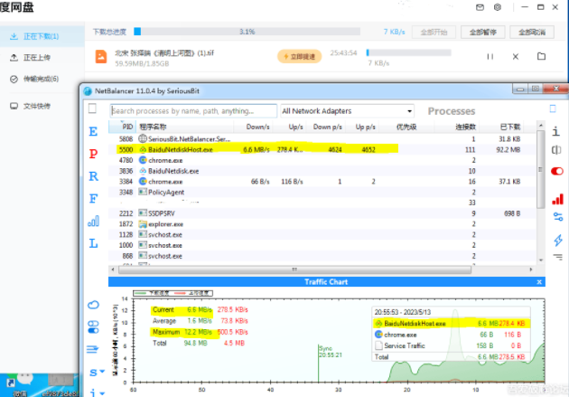 可见下载速度明显增快。注意,百度网盘内部显示的下载速度是不对的,看进度条就行了。