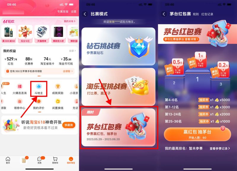 淘宝APP->我的->右划找到“斗地主”->茅台红包赛->前3名领0.2~1元通用购物红包