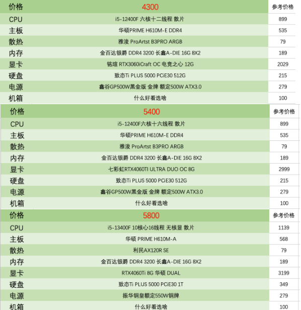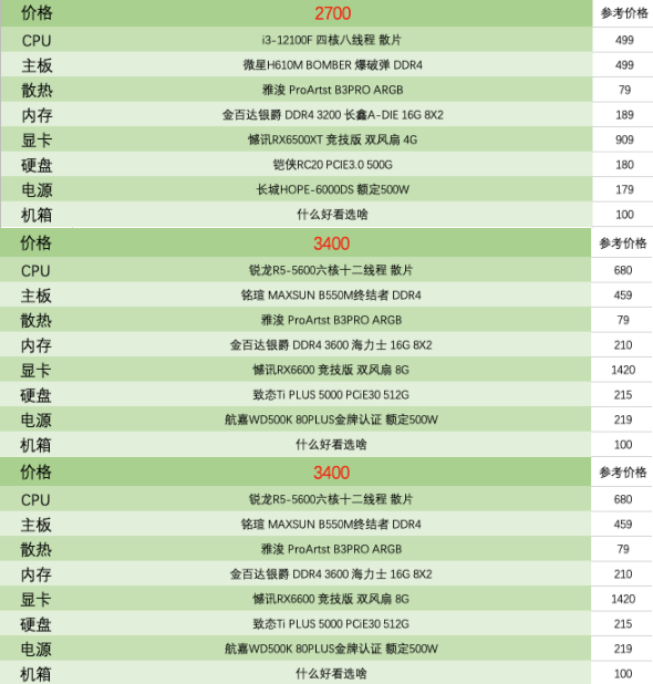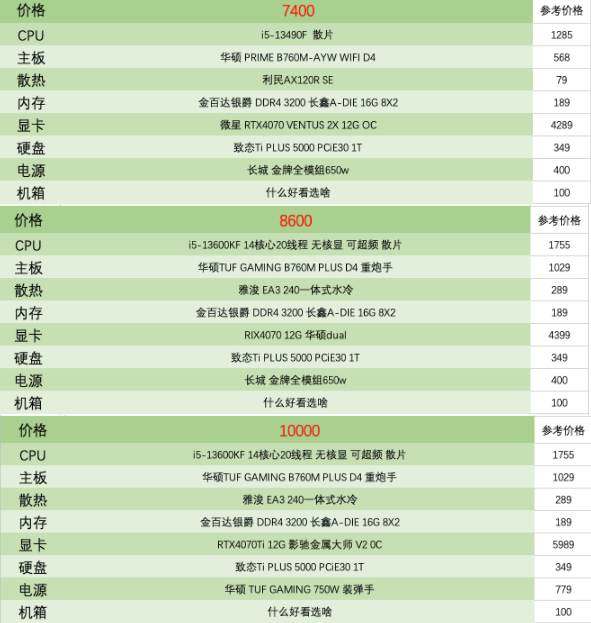 一千到一万元电脑配置推荐