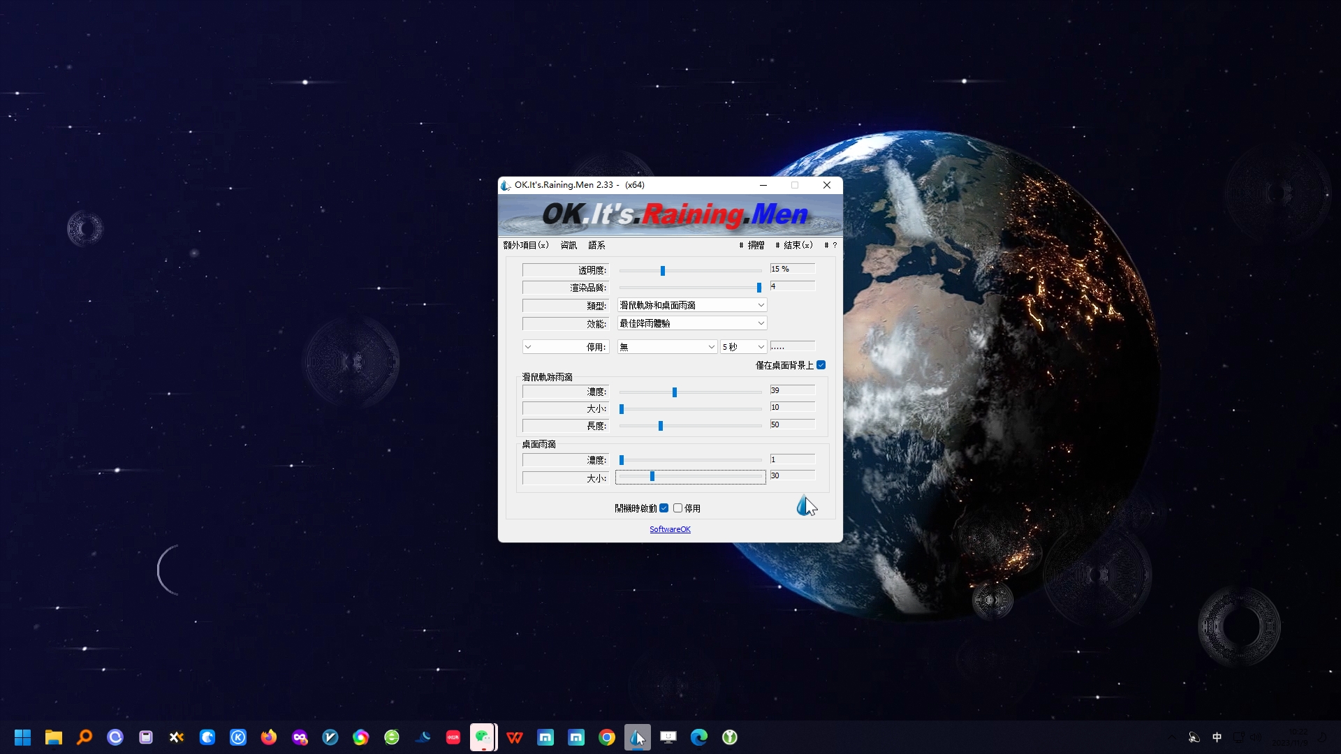 桌面上创建神奇的雨滴,具有美丽的效果和各种自定义功能。支持中文,设置简单的小工具,可以试试