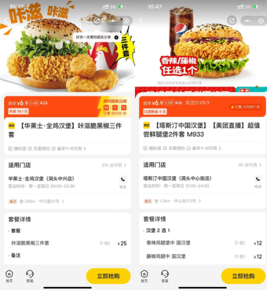 美团6.9元买华莱士或塔斯汀