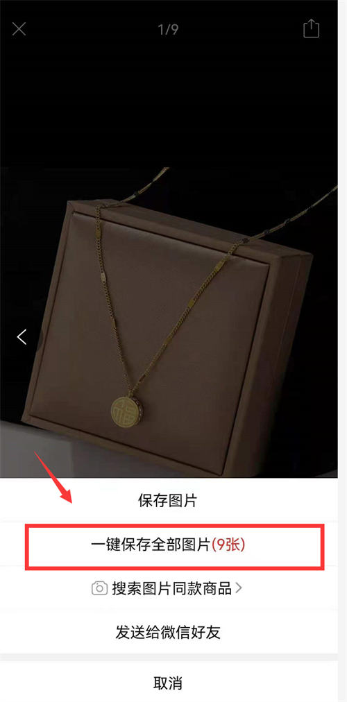 然后拼多多上图片长按,会出现一个一键保存全部图片,保存以后,就可以打开闲鱼进行图片上传了。
