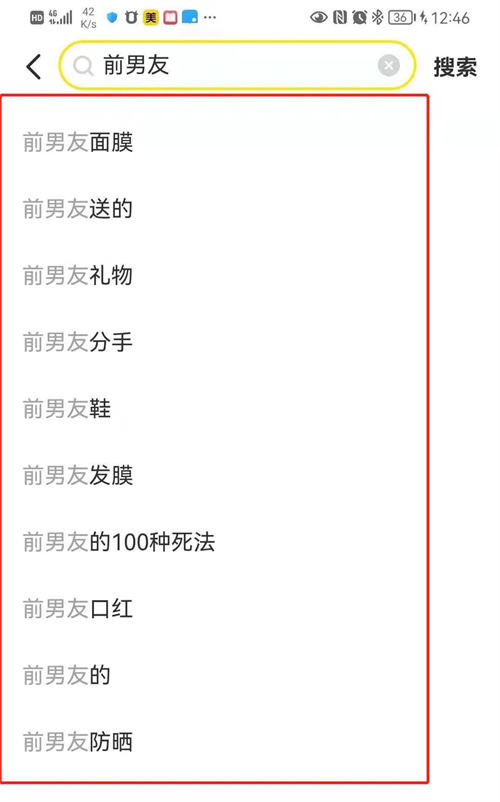 搜索个关键词前男友都可以出来一堆长尾词。