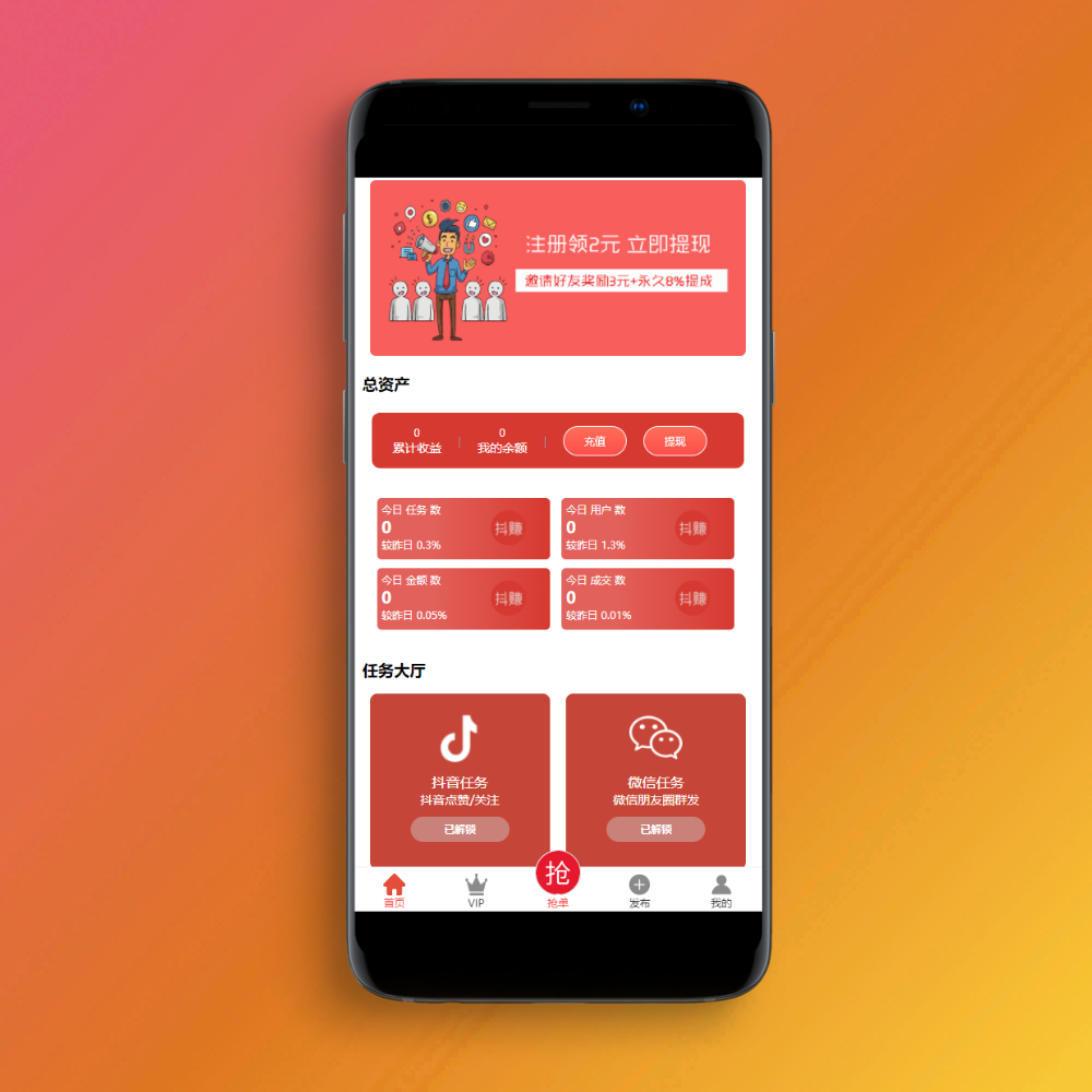抖音在线点赞任务发布接单运营平台PHP网站源码 多个支付通道+分级会员制度