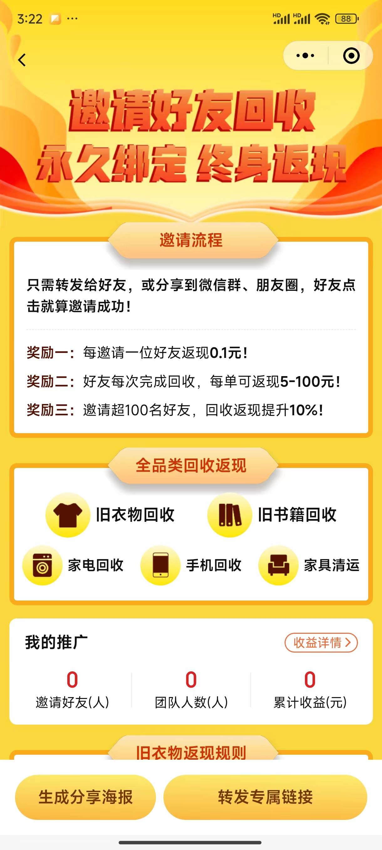 几乎每个家庭都有旧衣服,大部分旧衣服只能扔掉,现在旧衣物可以回收变现。快递员全国范围内免费上门回收,衣物根据区域和重量结算。自用可旧衣物折现,推广用户回收旧衣物,可以获得分佣。可以到小区公告栏张贴,或者业主群里分享。是一个可以长期做绿色管道收益的项目。除了旧衣物,其他也可以回收。具体看下图