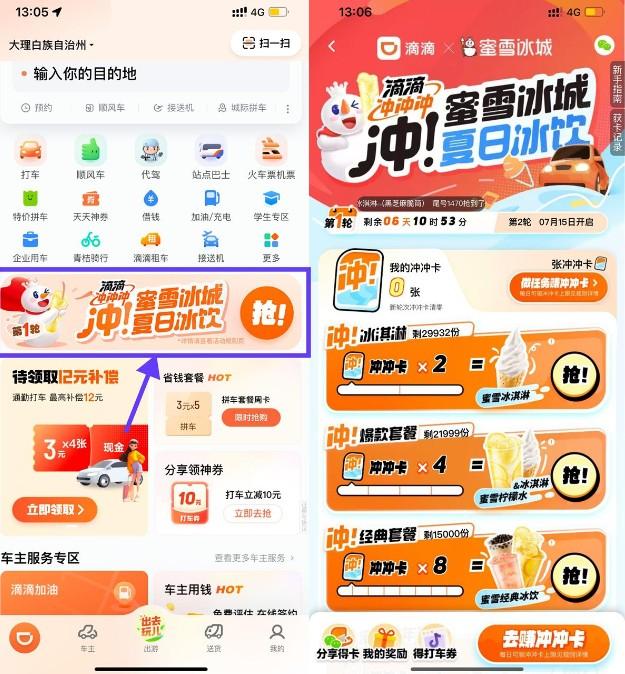 滴滴累计打车得蜜雪冰城奶茶