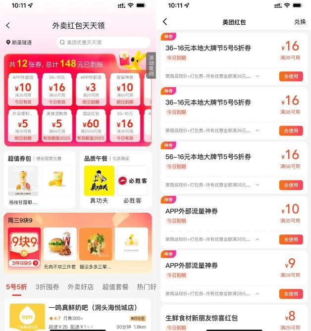 - 11美团搜索【50555】半价外卖券