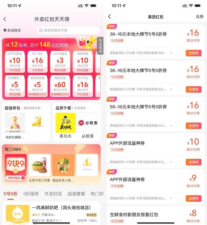 - 11美团搜索【50555】半价外卖券