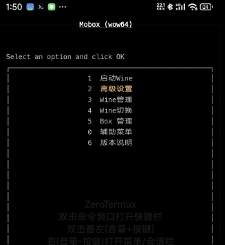 好,现在回到termux启动wine(第1次启动会安装软件,时间会有点长),然后回到termux:x11,就可以看见画面了