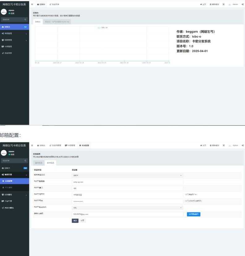 卡密通过邮件形式发送到对方邮箱,邮件模板可以自己进行替换