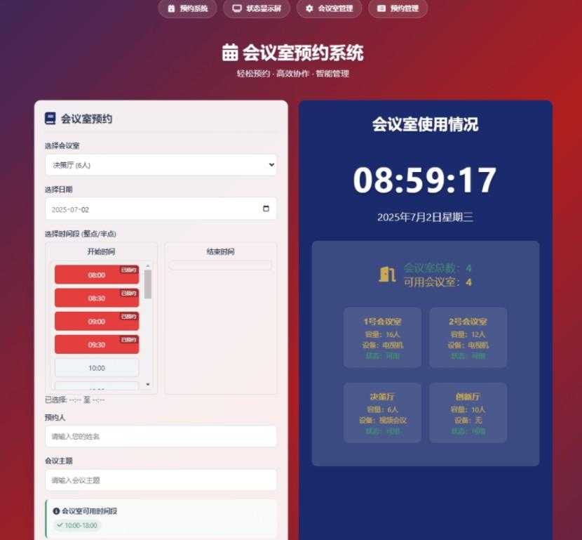 包含预约界面,状态显示屏,会议室管理,预约管理。
