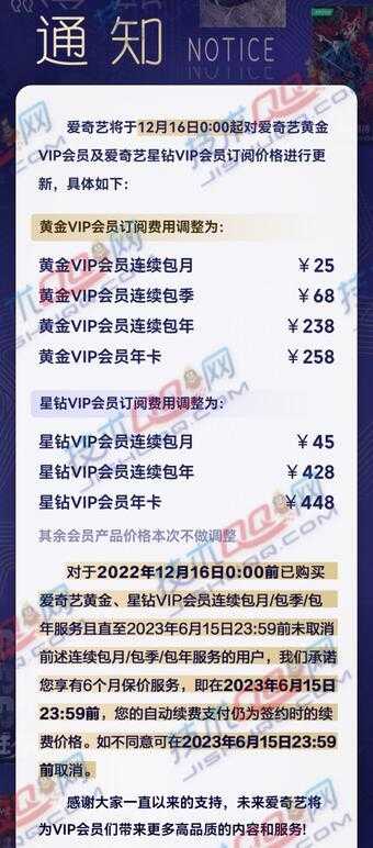 在12月16日0点爱奇艺对黄金VIP和星钻VP价格再次进行更新