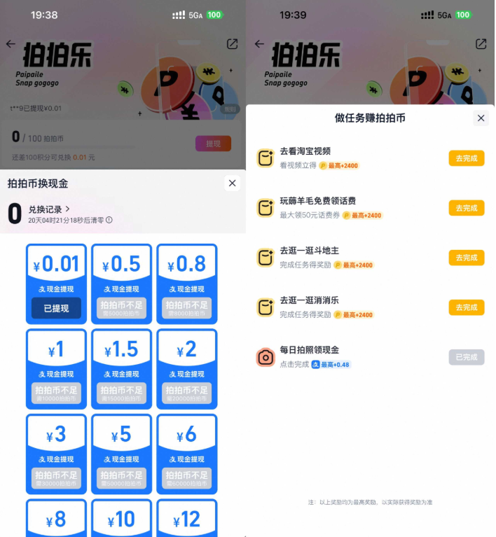 - 1淘宝拍拍乐每天攒拍币兑红包