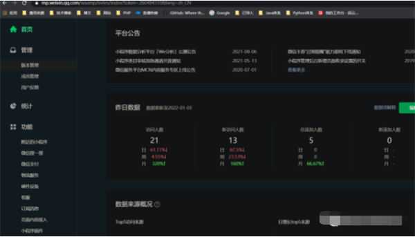 左侧是小程序后台的菜单。