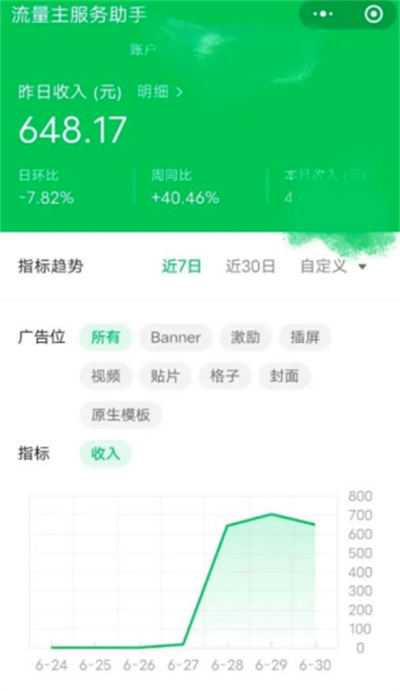 当小程序积累 1000 用户后(用户点进来既算新用户),就可以开通流量主,流量主是腾讯为小程序开发者提供的一种变现方式。流量主简单来说就是在小程序中加入广告,每当有用户访问小程序后,就能收到广告收益。 在小程序中为开发者提供了九种广告(只需要了解即可)。