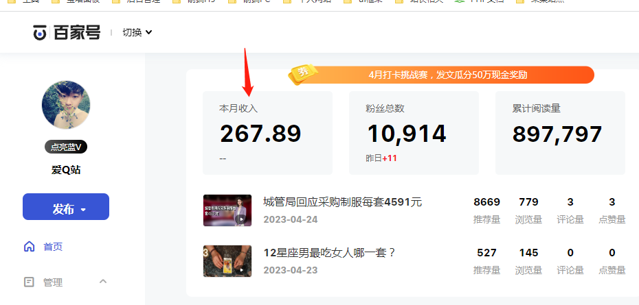 当然不止 在公众号发文了,百家号、搜狐号、今日头条等都可以,之前鹏仔经常在 百家号发文,一天几十块收益。