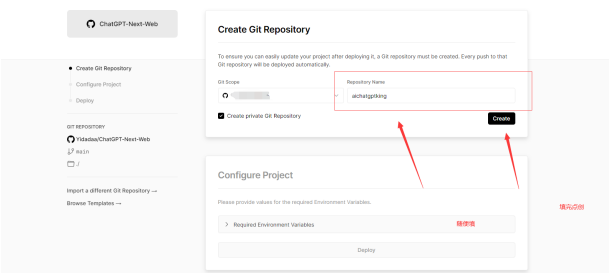 4、随便填自己喜欢的名字 这个名字会当作vecel二级域名的前缀