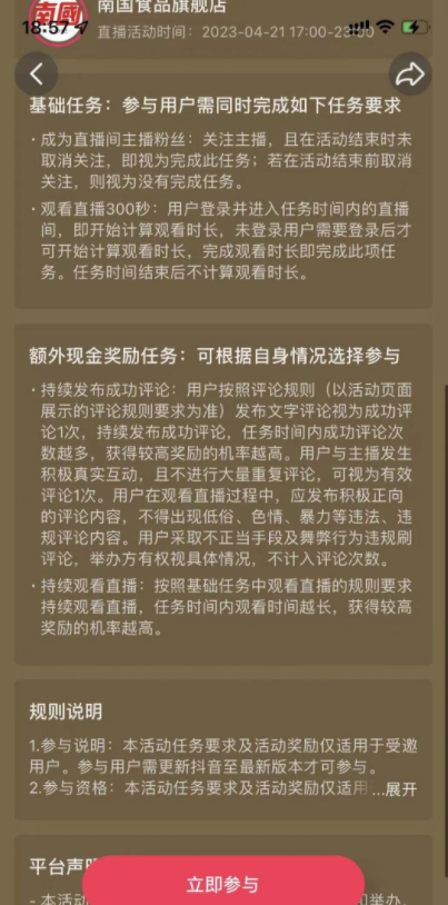 每一个看直播的任务都会有必须完成的要求,在做任务之前记得把要求看清楚,达到要求才会有深收益,