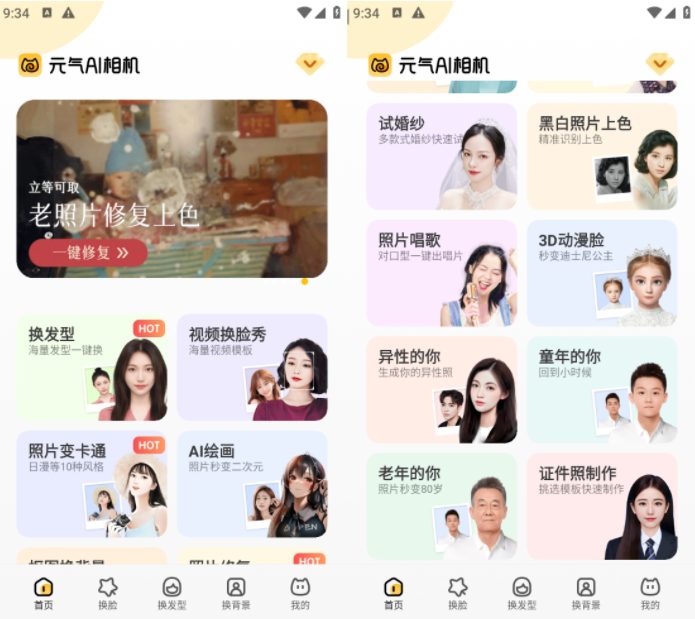 基于AI算法的智能图像处理,可帮助你修复老照片破损,智能上色并大幅提升照片清晰度;可一键分析脸型,实现换卡通脸、3D动漫脸异性脸、预测童年照、老年照等多种高级图片效果。(软件已解锁会员)