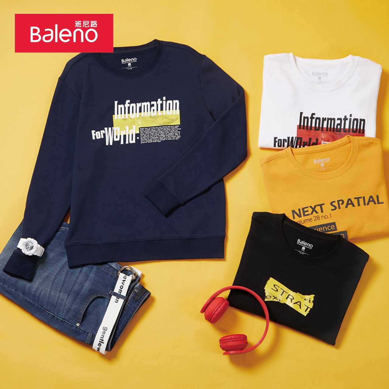 【拍2】班尼路秋冬卫衣男长袖印花圆领上衣,官方原价100元, 券后价59元包邮