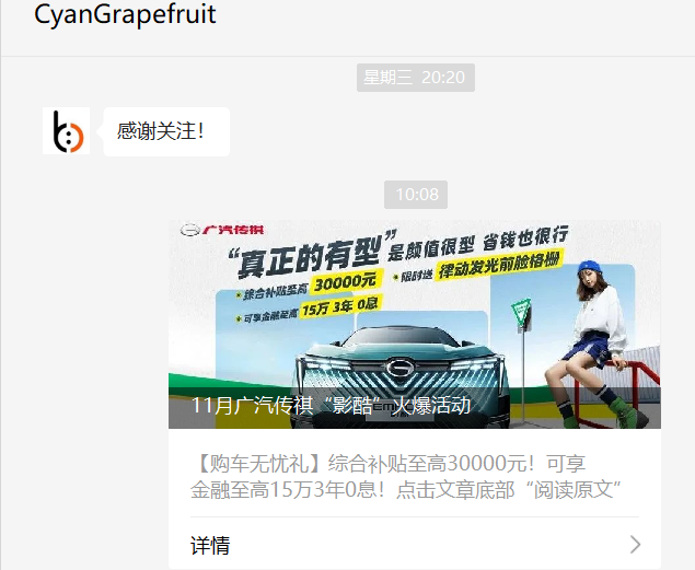关注公众号《CyanGrapefruit》,查看“11月”最新推文,点击文章底部“阅读原文”进入活动,获取完整服务后点击“右上角”分享页面给好友,记得让好友获取完整服务才有效,好友点击即可自动推现金红包,亲测1.18元,红包数量有限,如未推包,证明活动已结束!耐心等一下!