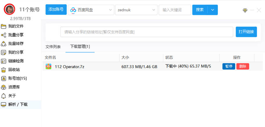 一款针对热门网盘的文件管理、批量分享、批量转存、批量修改重命名、批量检测链接、跨账号移动文件、多账号文件搜索等,支持不同网盘的不同账号的资源操作,各种资源导出,并支持资源探索功能,优质资源一键转存保存!并支持账号池切换,转存时,空间不足,自动切换到另一个账号,无需人员干涉!全自动多网盘批量转存、分享等!
