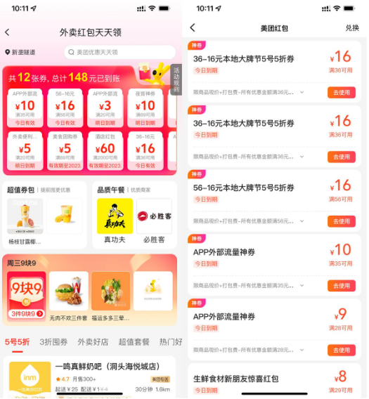 - 11美团搜索【50555】半价外卖券