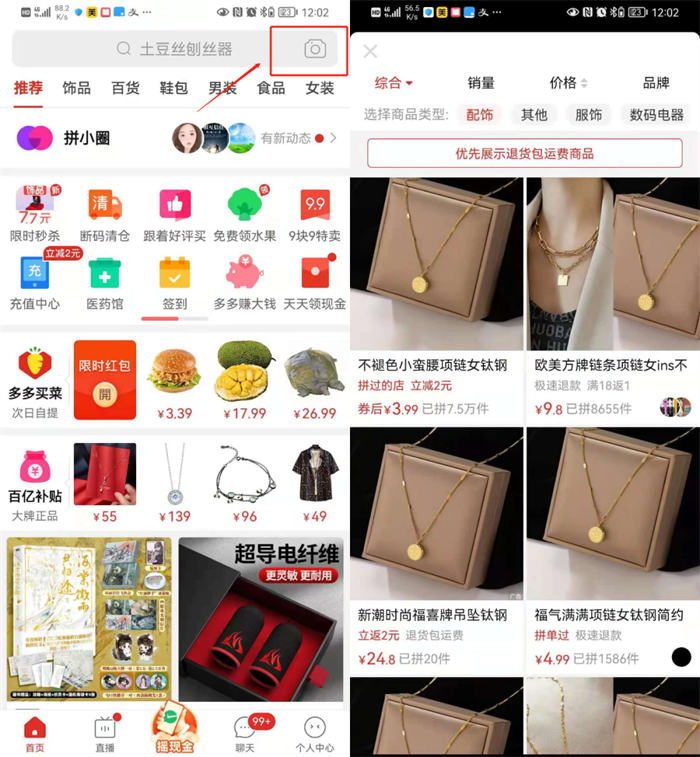 1688使用起来比较麻烦,我是使用拼多多的。直接保存对标同行的图片,然后打开拼多多右上角进行搜同款。
