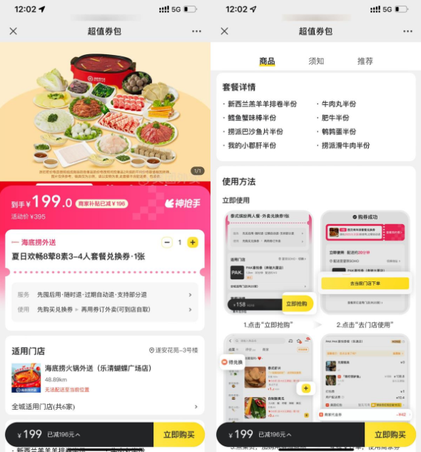 199元购8荤8素套餐,直接海底捞外送到家的,大夏天在家吹空调吃火锅美滋滋!